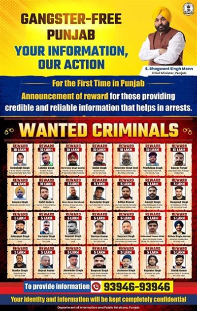Punjab govt releases list of 28 most wanted criminals; to reward informants