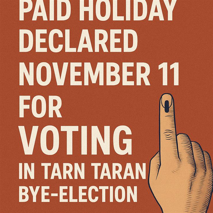 Chandigarh- For the bye-election of the Punjab Legislative Assembly constituency Tarn Taran, voting will take place on November 11, 2025 (Tuesday). On this day, keeping the election in view, a local holiday has been declared under the Negotiable Instruments Act, 1881, for all government offices, boards/corporations, and educational institutions located in the Tarn Taran constituency.