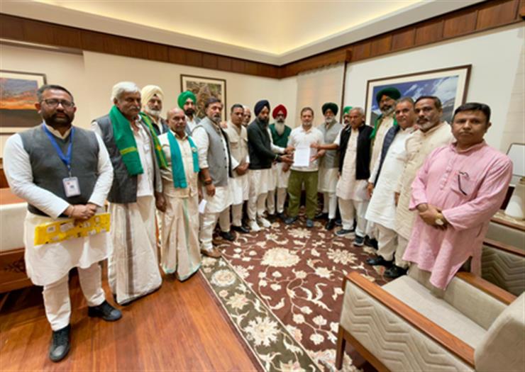 New Delhi, Feb 13 (IANS) Leader of Opposition in the Lok Sabha, Rahul Gandhi, on Friday met leaders of several farm unions from across the country at the Parliament House.