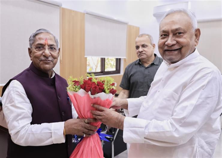 Patna, March 7 (IANS) Former Speaker and senior BJP leader Nand Kishore Yadav met Chief Minister Nitish Kumar at his official residence, 1 Anne Marg in Patna, on Saturday, after being appointed as the new Governor of Nagaland.